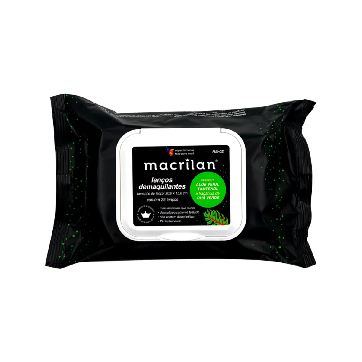 Lenços Demaquilantes Macrilan RE-02 especialmente desenvolvidos para retirar toda a maquiagem deixando a pele limpa e macia. Ele é dermatologicamente testado e tem seu PH balanceado, para se adequar bem ao PH da sua pele.